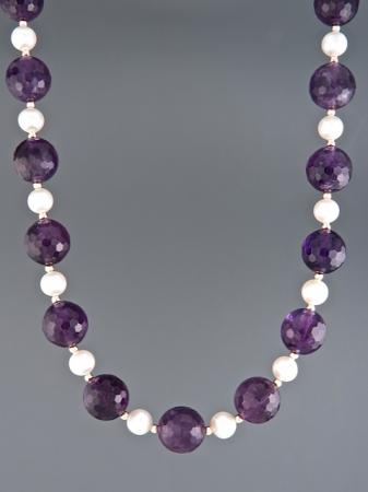 Amethyst & Pearl Necklace – 10mm round stones – A116