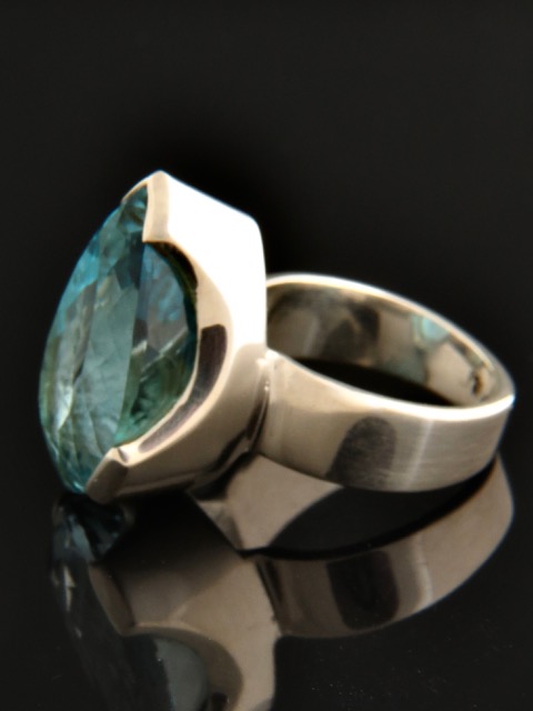 This Sterling Silver ring features a teardrop-shaped, faceted Blue Topaz stone.